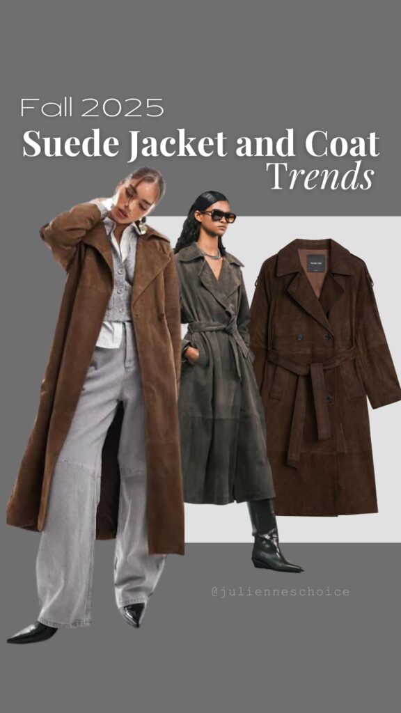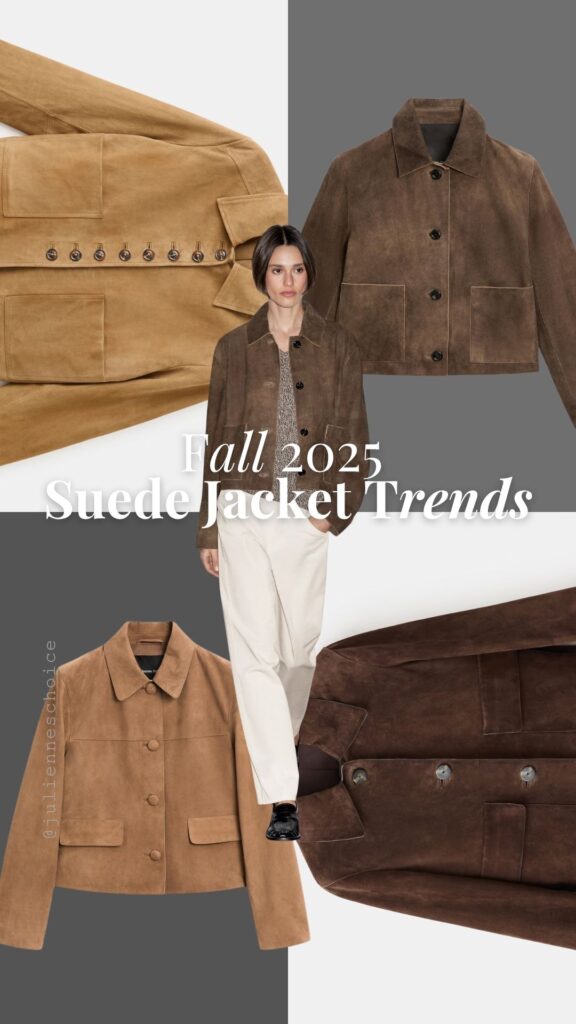 Soft, warm, and versatile—suede jackets return as a fall essential. This season’s versions play with color and silhouette, from cropped biker cuts to vintage brown tones. Pair with flared pants or midi skirts for a 70s-inspired look that feels effortless.