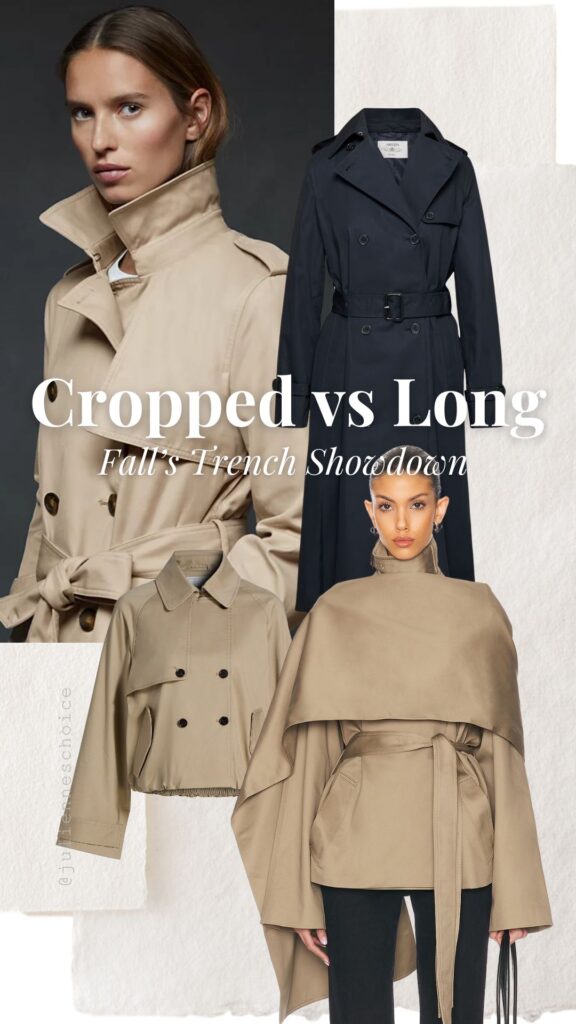 A forever classic reimagined. Cropped trenches join the traditional long silhouettes, offering variety and movement. Belted styles remain strong, often paired with high boots for a sharp, structured look.